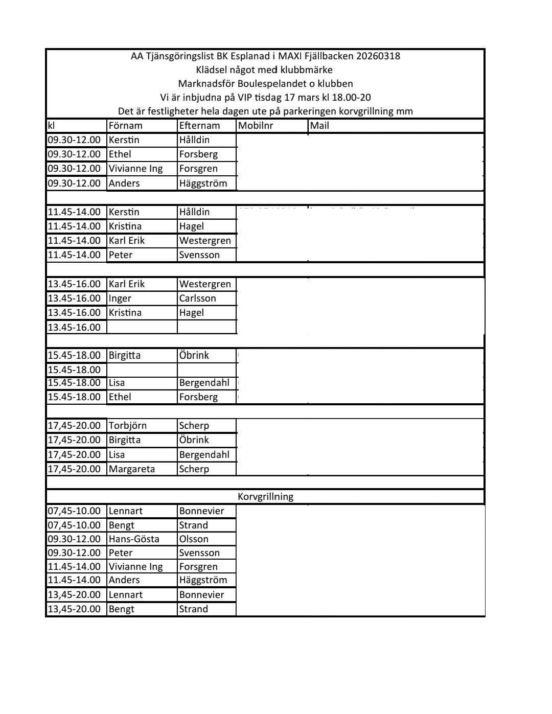 Här är en tjänstgöringslista för oss som ska tjänstgöra vid ICA Maxi Brynäs på onsdag 18/3 (OBS! Uppdaterad 20260316)