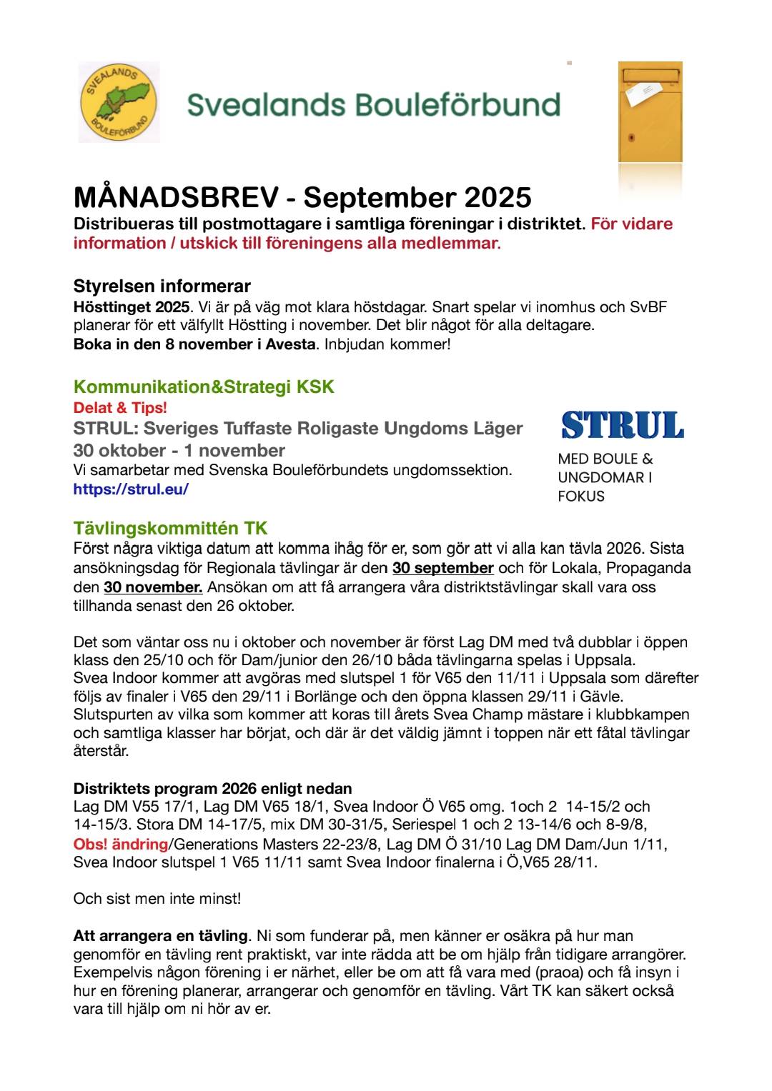 Nytt månadsbrev från Svealands Bouleförbund ligger under Nyhetsbrev från förbunden