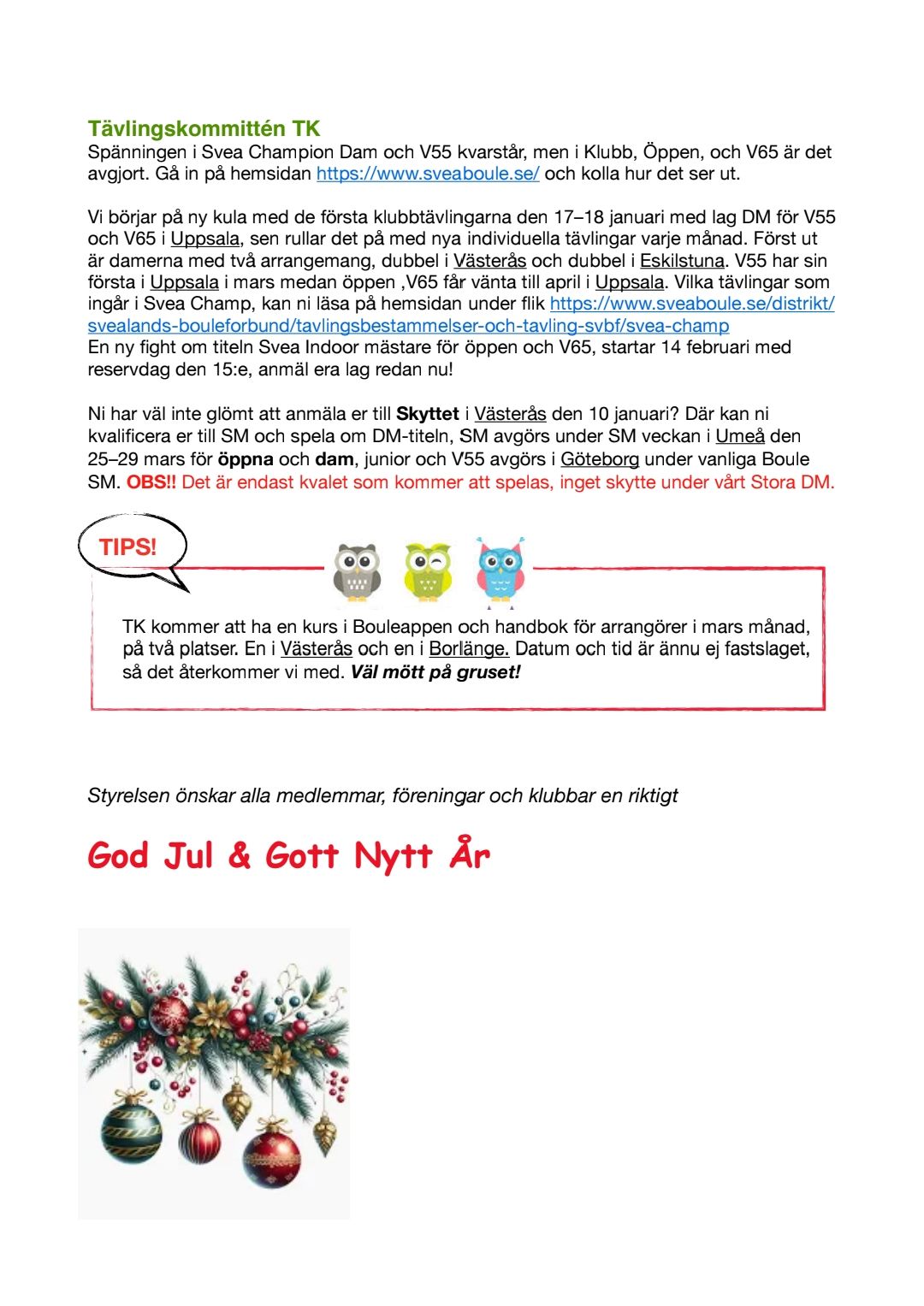 Nyhetsbrev December 2025-12-23 i Allmänt Prenumerera på nyheter Genom att prenumerera på nyheter kommer du att få ett e-postmeddelande varje gång Bouleklubben Esplanad publicerar en nyhet. Ange din e-postadress: Genom att klicka på "Prenumerera" godkänner du vår integritetspolicy. Avbryt Prenumerera Du prenumererar nu på nyheter från Bouleklubben Esplanad. Vi har skickat ett bekräftelsemail till . Stäng Prenumerera via: E-post RSS Ligger också som .pdf på sidan Nyhetsbrev från förbunden